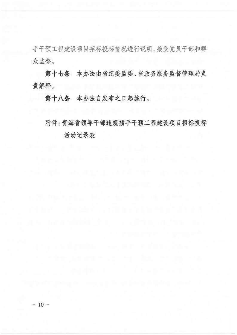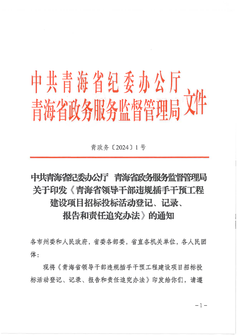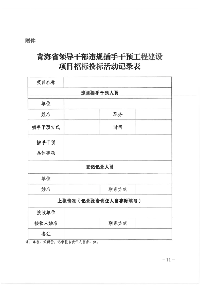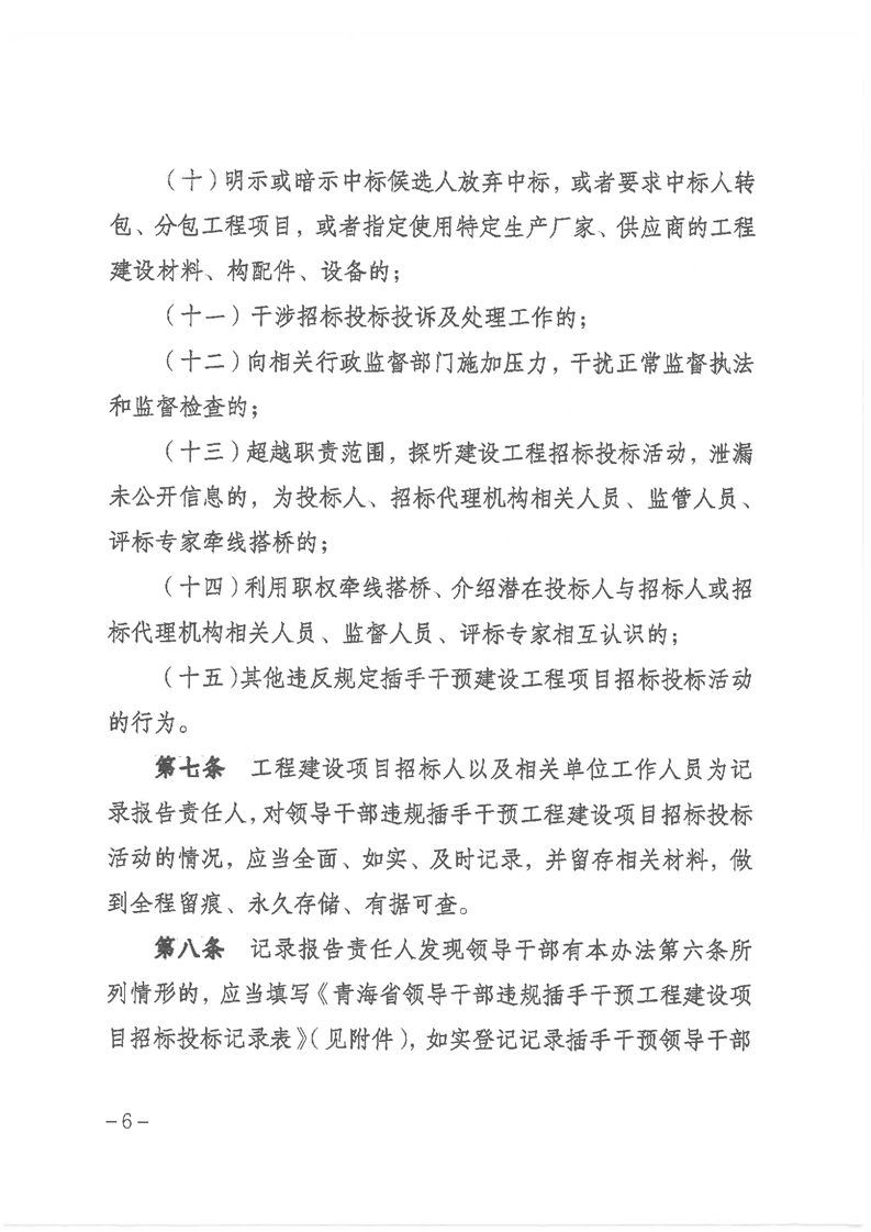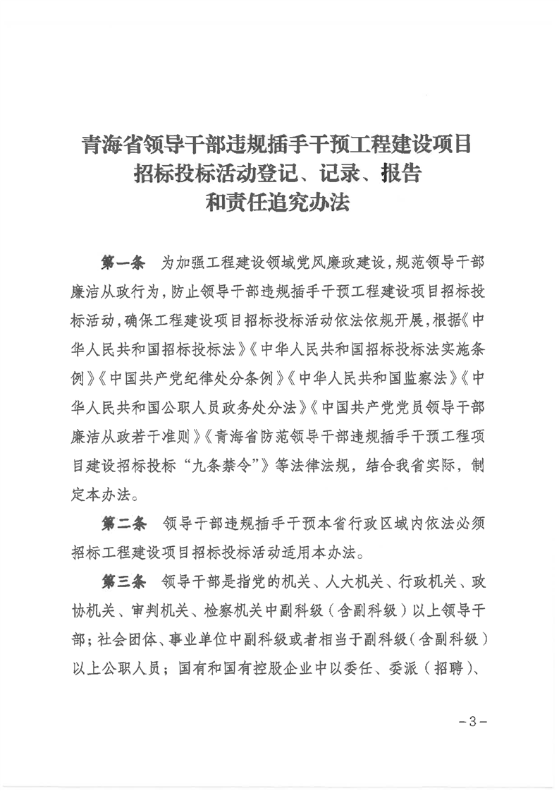 關(guān)于印發(fā)《青海省領(lǐng)導(dǎo)干部違規(guī)插手干預(yù)工程建設(shè)項(xiàng)目招標(biāo)投標(biāo)活動(dòng)登記、記錄、報(bào)告和責(zé)任追究辦法》的通知