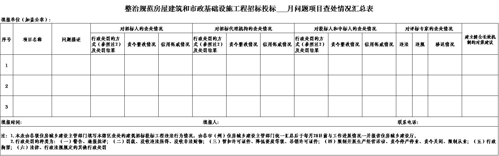 (四)認真總結(jié)完善。各市(州)住房城鄉(xiāng)建設主管部門要重點圍繞領(lǐng)導機構(gòu)建設、工作研究部署、組織推進、項目抽查、問題處理、治理成果等內(nèi)容對所轄地區(qū)整治規(guī)范工作推進落實情況進行總結(jié),并于2023年11月20日前上報2023年1月1日至2023年10月31日招標項目抽查情況及整治規(guī)范工作總結(jié),2024年8月20日前上報整治規(guī)范房屋建筑和市政基礎(chǔ)設施工程招標投標工作總結(jié),工作總結(jié)要注重選擇2-3個典型案例,對所發(fā)現(xiàn)的普遍性、系統(tǒng)性的問題要梳理上報建立健全長效治理對策,工作總結(jié)報廳領(lǐng)導小組辦公室。各區(qū)(縣)住房城鄉(xiāng)建設主管部門參考上述時間節(jié)點,適時向市(州)住房城鄉(xiāng)建設主管部門上報工作總結(jié)。