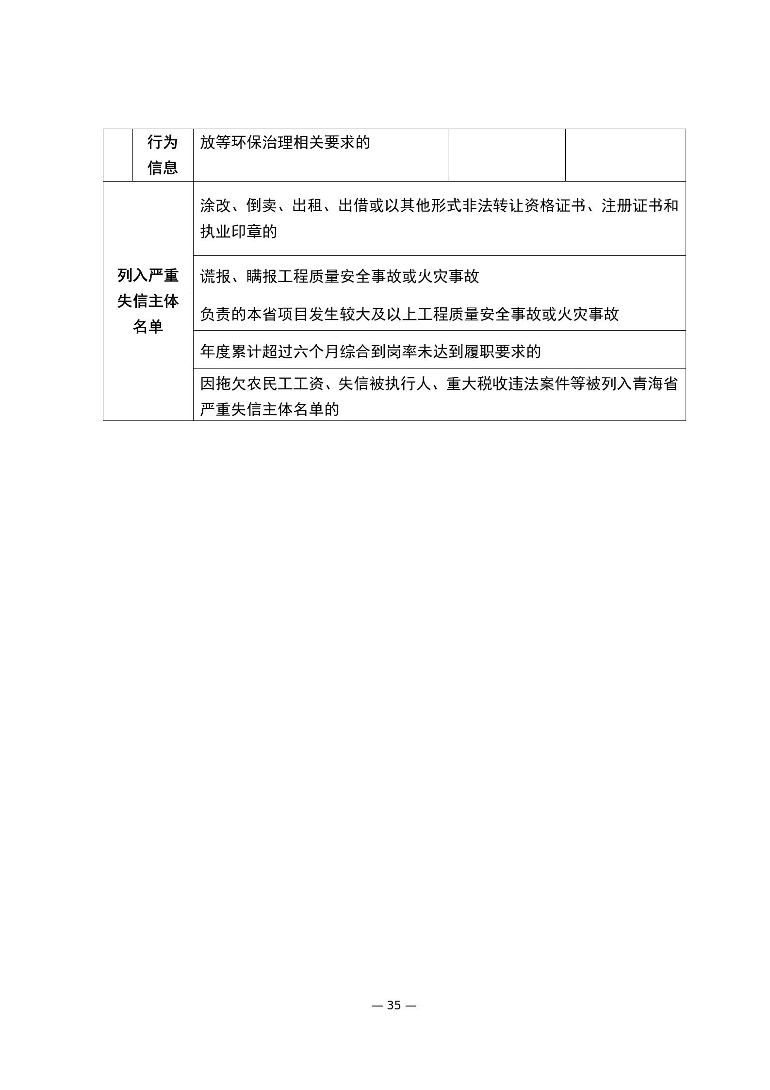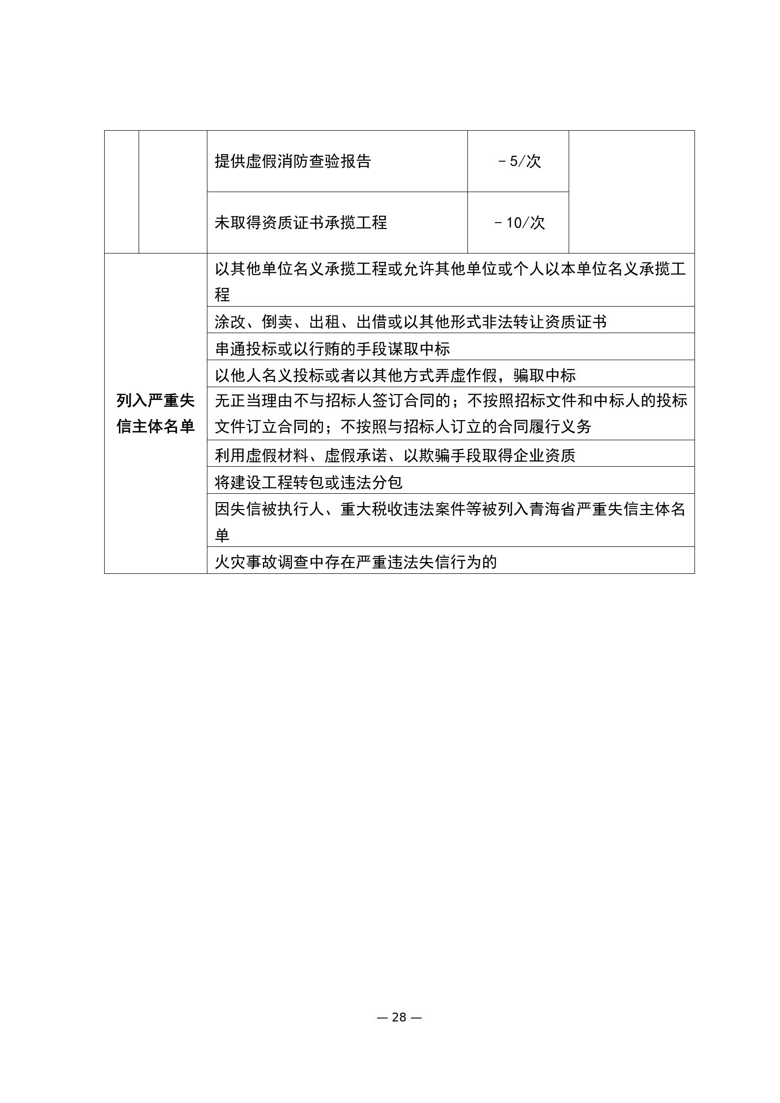 (一)在非國有投資項目中,建設單位不應選用建筑市場主體嚴重失信主體名單的企業(yè)和從業(yè)人員參與工程建設活動;24個月內(nèi)取消其參與政府投資項目工程建設活動資格;省外進青企業(yè)24個月內(nèi)不受理進青登記業(yè)務;